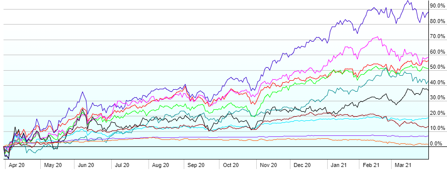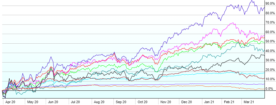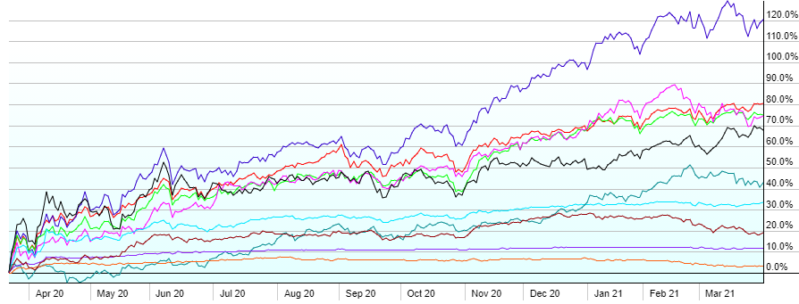 - Over the last 12 months, all assets classes have shown positive returns, amidst the worst pandemic in a century. US Small Caps are now up 120% from their Covid low on 3/23/2020.