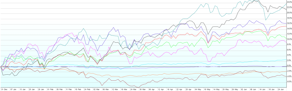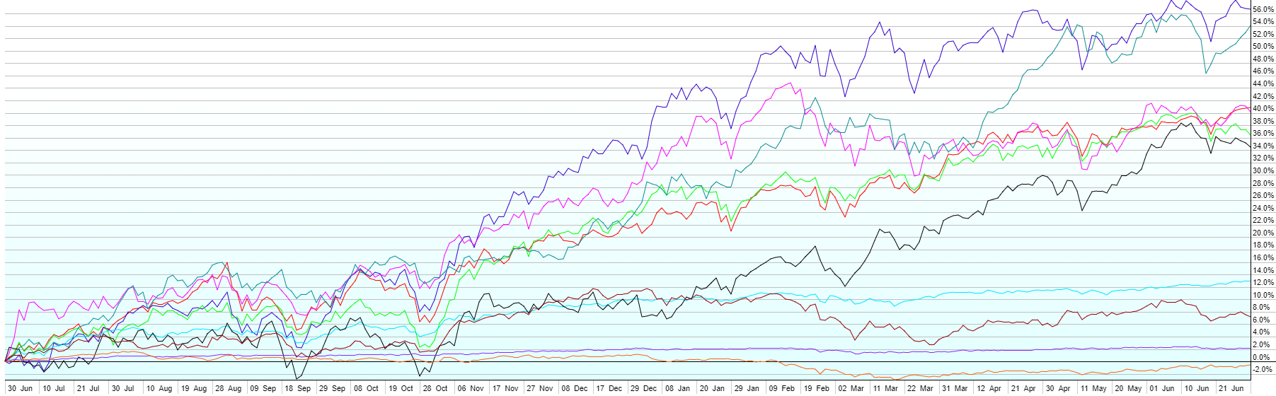 This post contains the usual returns by asset class for this past quarter (by representative ETF), year-to-date, last twelve months, last five years, last 10 years, and since the covid low (3/23/2020). While there is still no predictive power in this data, I’ll continue to post this quarterly for those of you that are interested.