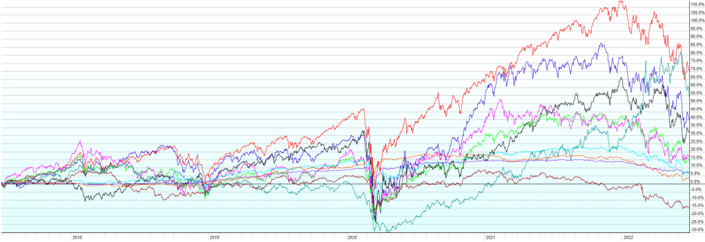 - Markets in general are still sharply up from the 2020 Covid lows and over the last 5 and 10 years. US Large and Small Caps have dominated global performance over the last decade.