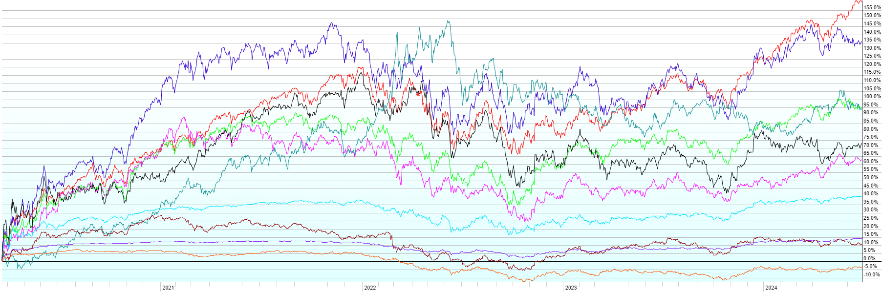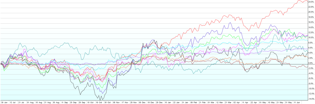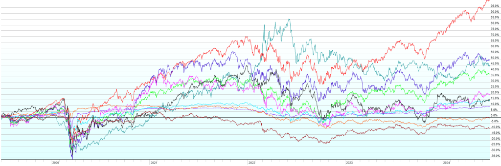 This post contains the usual returns by asset class for this past quarter (by representative ETF), year-to-date, last 12 months, last five years, last ten years, and since the covid low (3/23/2020). While there is still no predictive power in this data, I’ll continue to post this quarterly for those of you that are interested.