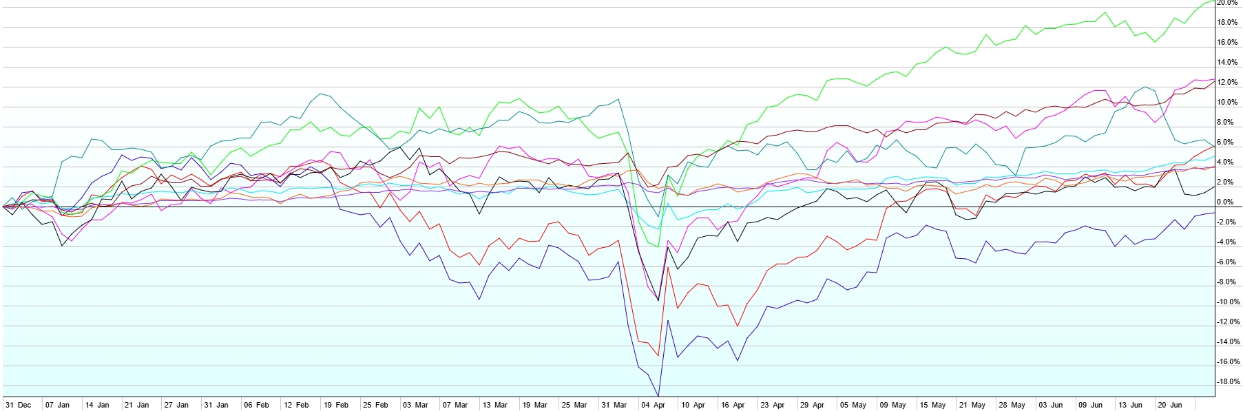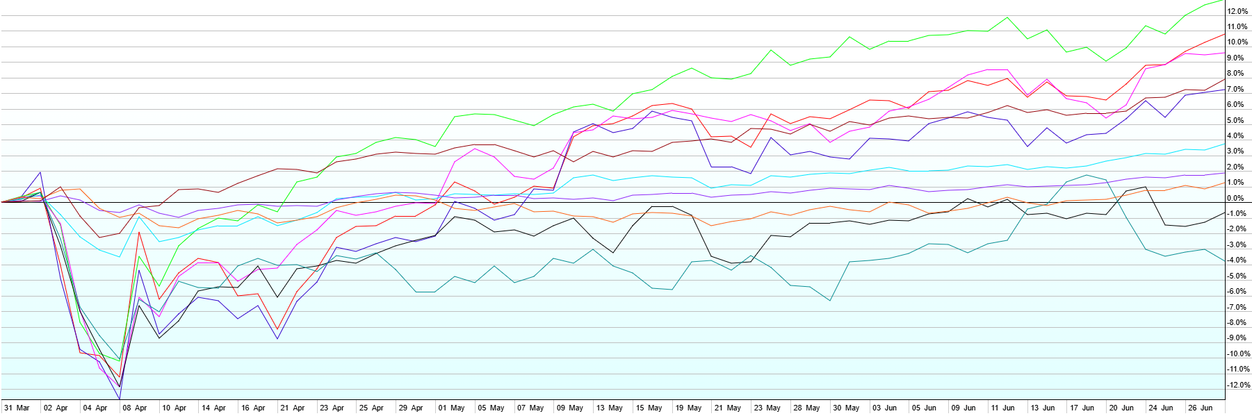 Q2 2025 experienced a lot of volatility on its way to solid overall returns. The quarter started with President Trump announcing “reciprocal tariffs” on virtually all countries on “Liberation Day”, April 2nd. Markets reacted very poorly, especially US Stocks. My thoughts from early April are here and here. Markets (US Stocks down 11-13% over that first week of April and lots of stress in the US Treasury market) seemed to force the administration’s hand toward de-escalation. A new openness toward negotiation of new trade deals sent markets into recovery mode. Foreign Stocks maintained the outperformance they showed in Q1, but all asset classes rallied, at least somewhat, for the last 12 weeks of the quarter. From best to worst: Foreign Developed Stocks (+13%) as the dollar plunged to a 3+ year low, US Large Caps (+11%), Emerging Market Stocks (+10%), Emerging Market Bonds (+8%), US Small Caps (+7%), High-Yield Bonds (+4%), Short-term Corporate Bonds (+2%), Aggregate US Bonds (+1%), Real Estate Investment Trusts (REITs) (-1%), and Commodities (-4%). REITs struggled toward the end of the quarter on concerns over office REITs in NYC after a self-proclaimed Socialist won the Democratic Primary for mayor. Commodities struggled after a cease-fire between Israel & Iran erased the premium that had settled into energy prices over the previous few weeks. These lower commodity prices, though, helped other assets to rally into the end of the quarter given possibly lower future inflation as a result. Lower inflation gives the Federal Reserve more cover to cut interest rates, which would provide a tailwind for asset prices. Markets are now pricing in about 2 1/2 quarter point cuts (63 basis points) between now and December, which would take Fed Funds down to ~3.75% and savings interest rates down to the low 3% range. Unfortunately for the housing market, this may not translate into lower long-term rates (a requirement for lower mortgage rates) if the Fed follows the forecasted path for the short-term. Q3 will be interesting as we could get our first Fed rate cut of the year and need to follow the progress of the One Big Beautiful Bill through Congress. If it passes, higher deficits are a near certainty and with that will come pressure on long-term interest rates to move higher. There will be lots of tax implications as well, some retroactively effective in 2025. I will post a summary of the key tax provisions if/when the Bill nears passage.