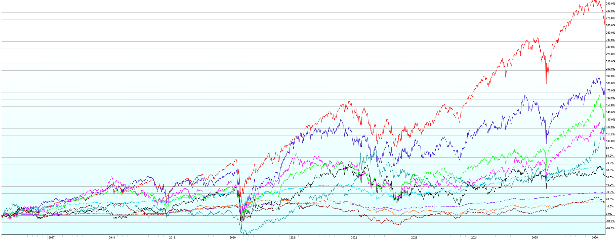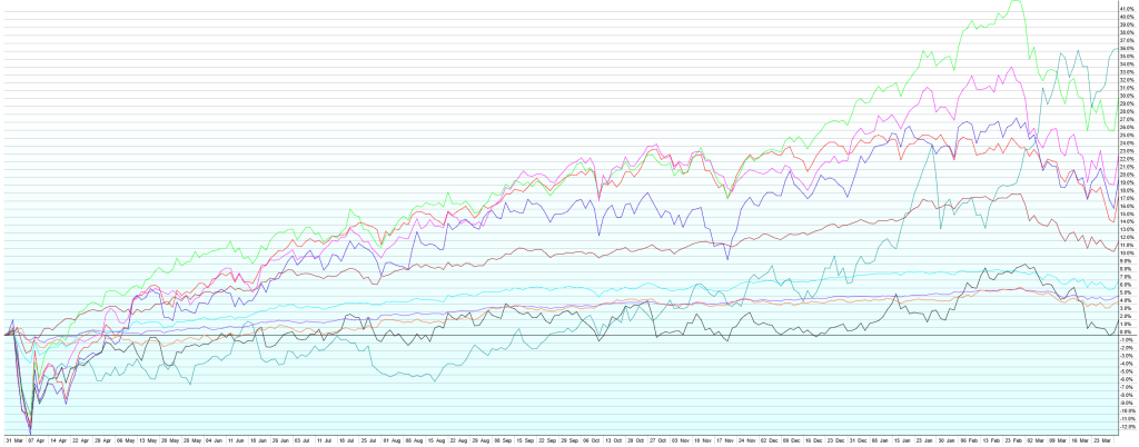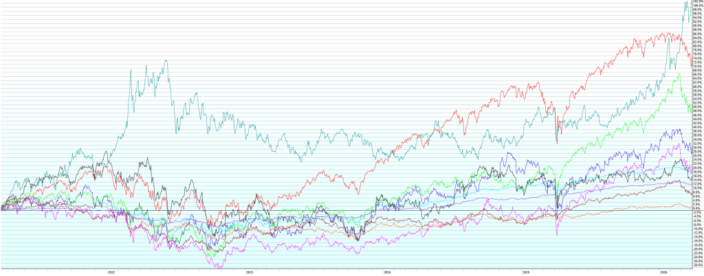 Note also the other charts as we’re now approaching the one-year anniversary of the “Liberation Day” selloff around the world. Despite tariffs, war in the Middle East, war in Ukraine, spiking energy prices, Trump, Biden, a global pandemic, US debt downgrades, natural disasters, and a host of other imperfect world issues most of us can’t even remember over the last decade, all major market segments are up over the last one, five, and ten years. There’s a lesson in there somewhere.