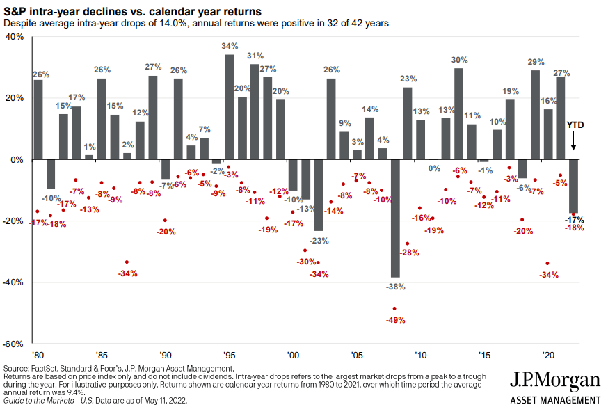 There is no doubt that losses cause pain. We all work hard for our money and hate to see it evaporate in a market decline. There is no way to earn equity returns over the long term though without being willing to live through the declines. If there were no risks in stocks, they would pay 2% as FDIC-insured bank accounts do. We investors signed up for this risk and if nothing else, we should take solace in the fact that lower prices are a good thing when you’re a buyer. We should also remember that there have been thousands of crises, recessions, political upheavals, natural disasters, wars, and plagues. It’s not a coincidence that even after all of that, we were recently at all-time highs with all-time high global population and all-time high measures of productivity. Humans will continue to worry and humans will continue to create better lives for themselves and their children. This (the current downturn) too shall pass.